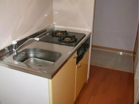キッチンは2口ガスコンロにグリル付きのシステムキッチンになっております。
