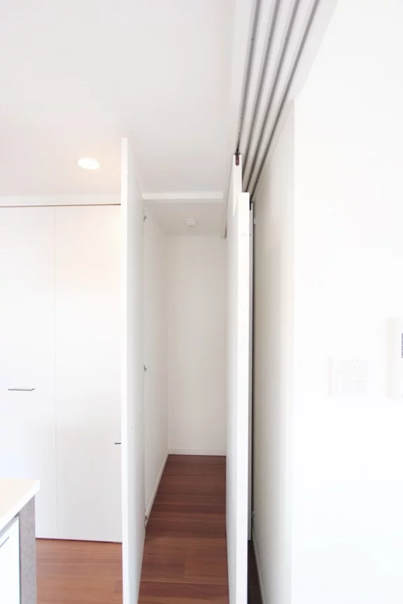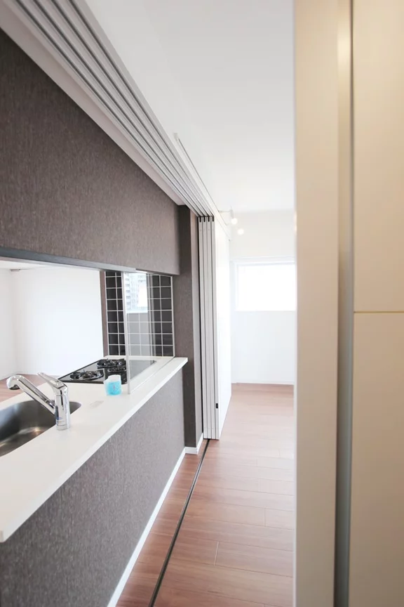 居室・リビングとキッチンを分ける引き戸も用意されているので、お料理の匂いがお部屋中に充満する心配はございません。また、居室側には南東向きバルコニー・リビング側には北西向きのバルコニーがあり、風通し良好で日当たりも良いお部屋となっております。