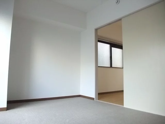南側と北側に窓があり、風通しの良いお部屋です。LDKは約8帖と二人住まいでもゆとりのある広さとなっております。ベッドルームは約6帖で、容量十分な収納と、エアコンがついております。