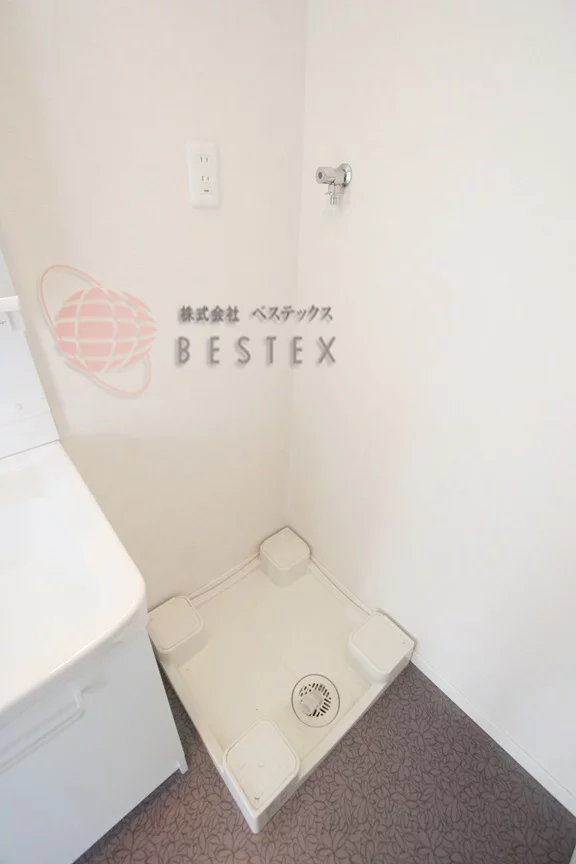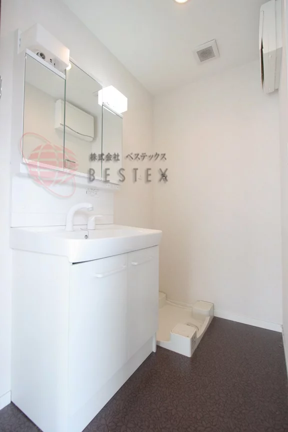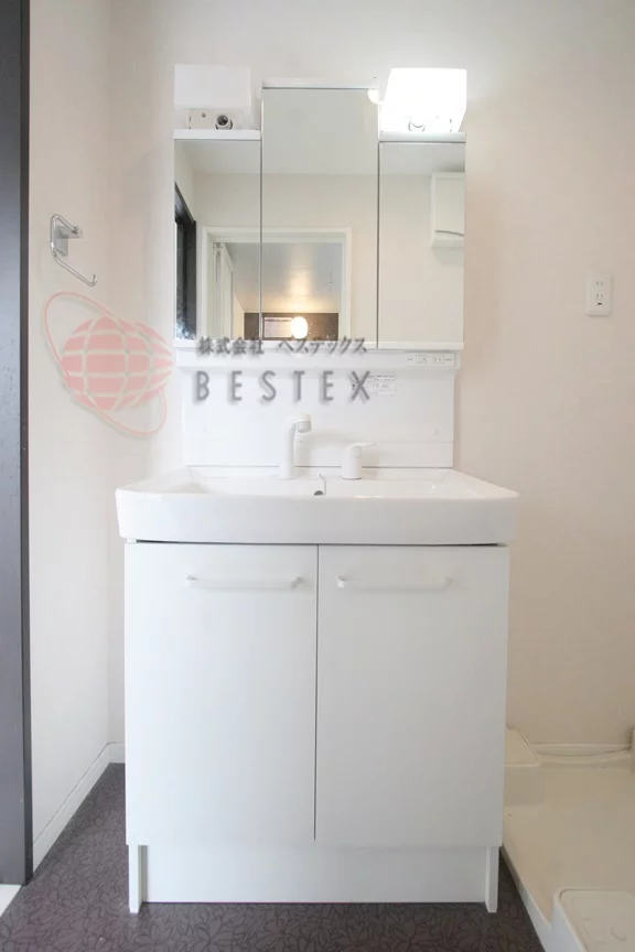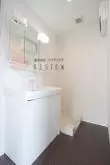 洗面台と洗濯機置き場の備わった洗面室は浴室とつながっており脱衣所としても使用可能。